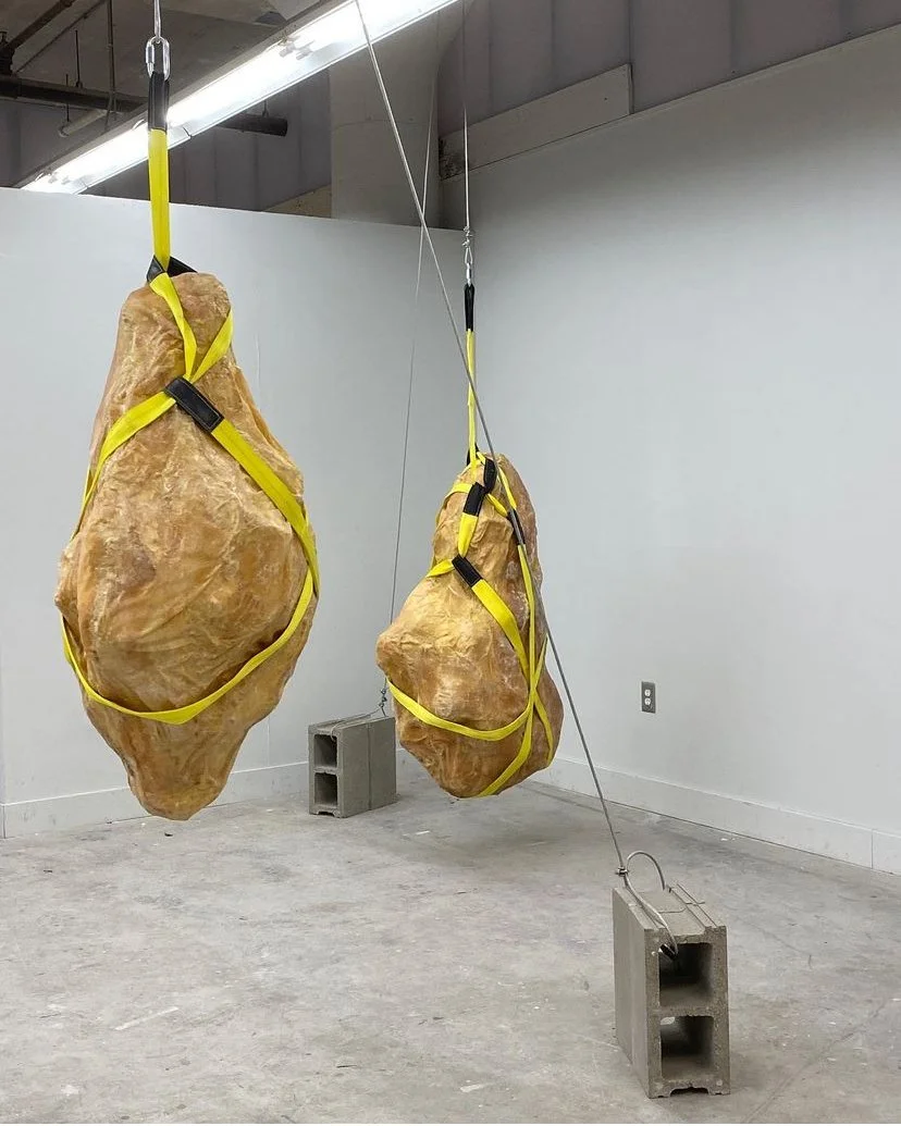 View fullsize View fullsize View fullsize Codicil 2023wood, wire, clay, latex, lift straps, steel cording, pulleys, cinder blocks12' x 8' x height variable